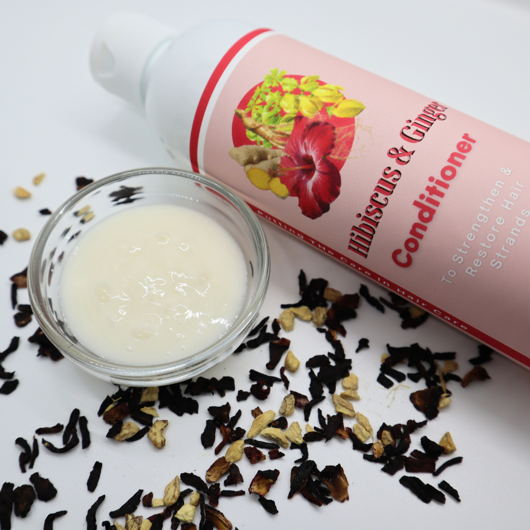 Condition against frizz, dryness, & breakage. The Hibiscus & Ginger Conditioner restores lost moisture and strengthens your hair strands after a wash with the Hibiscus & Ginger Shampoo. Aids in detangling, prevents split ends, and leaves your hair soft, shiny, and smooth.