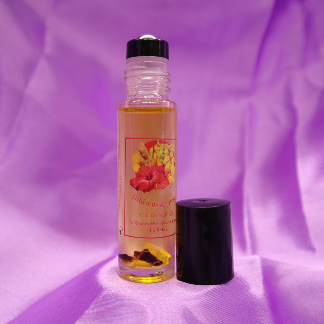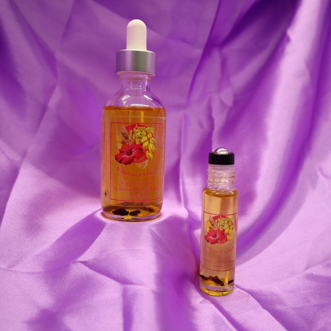 Awaken & strengthen your dormant hair follicles & roots. Hibiscus & Ginger Hair Growth Oil is infused with the herbs: Hibiscus, Ginger, and Ginseng- which are known to strengthen roots and awaken dormant hair follicles. This oil stimulates hair growth, prevents shedding & thinning, and combats dryness & dandruff.