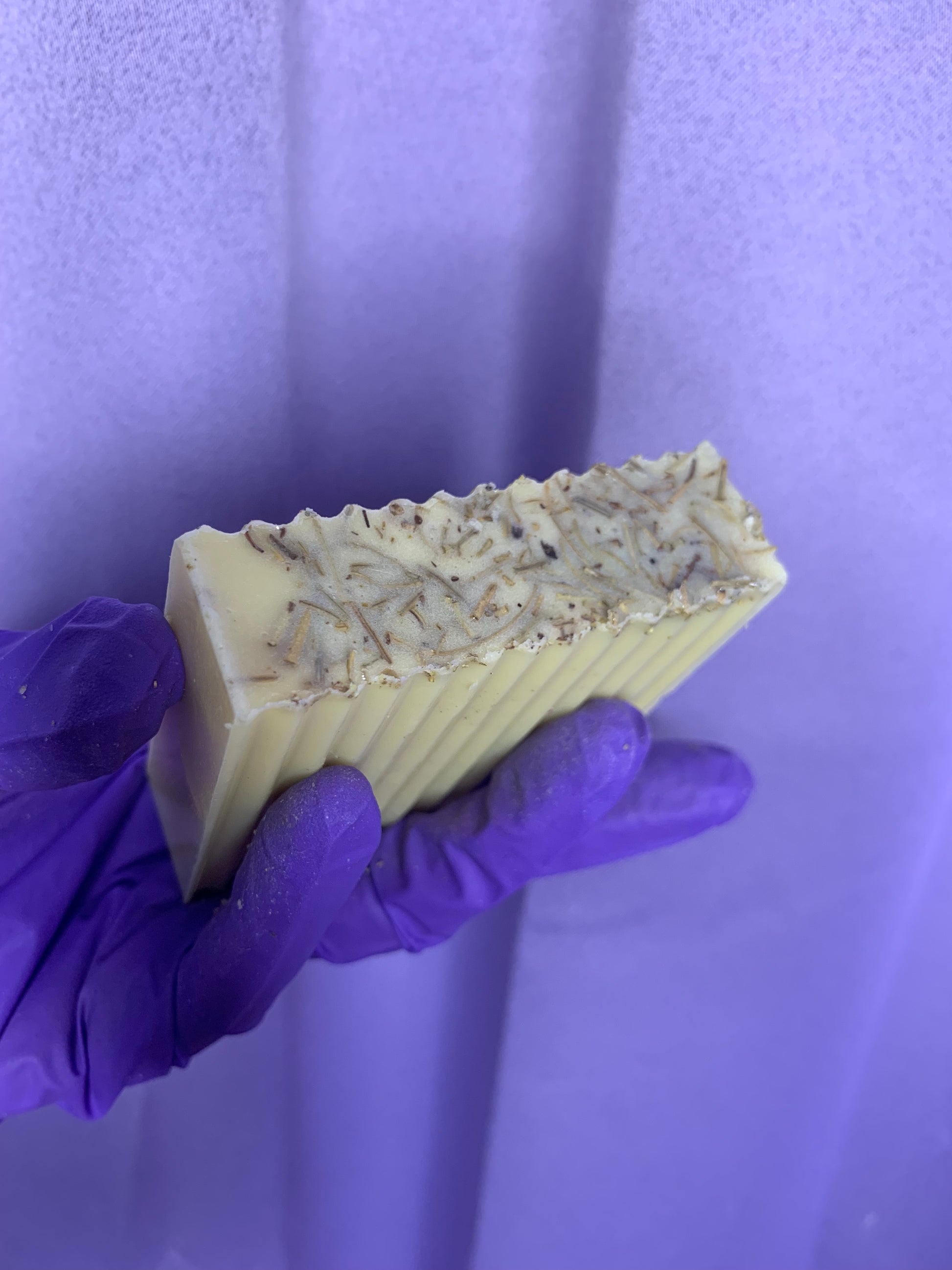 Cocos Nucifera (Coconut) Oil, Palm Oil, Safflower Oil, Purified Water, Kosher Glycerin, Shea Butter, Sodium Hydroxide, Trigonella foenum-graecum L.), Vitis vinifera (Grapeseed) Oil, Melaleuca alternifolia (Teatree) Oil, Salvia rosmarinus (Rosemary) Oil, Sorbitol (moisturizer), Sorbitan oleate (emulsifer), Oat protein (conditioner) Natural colorants and Titanium Dioxide, and fragrance oil.