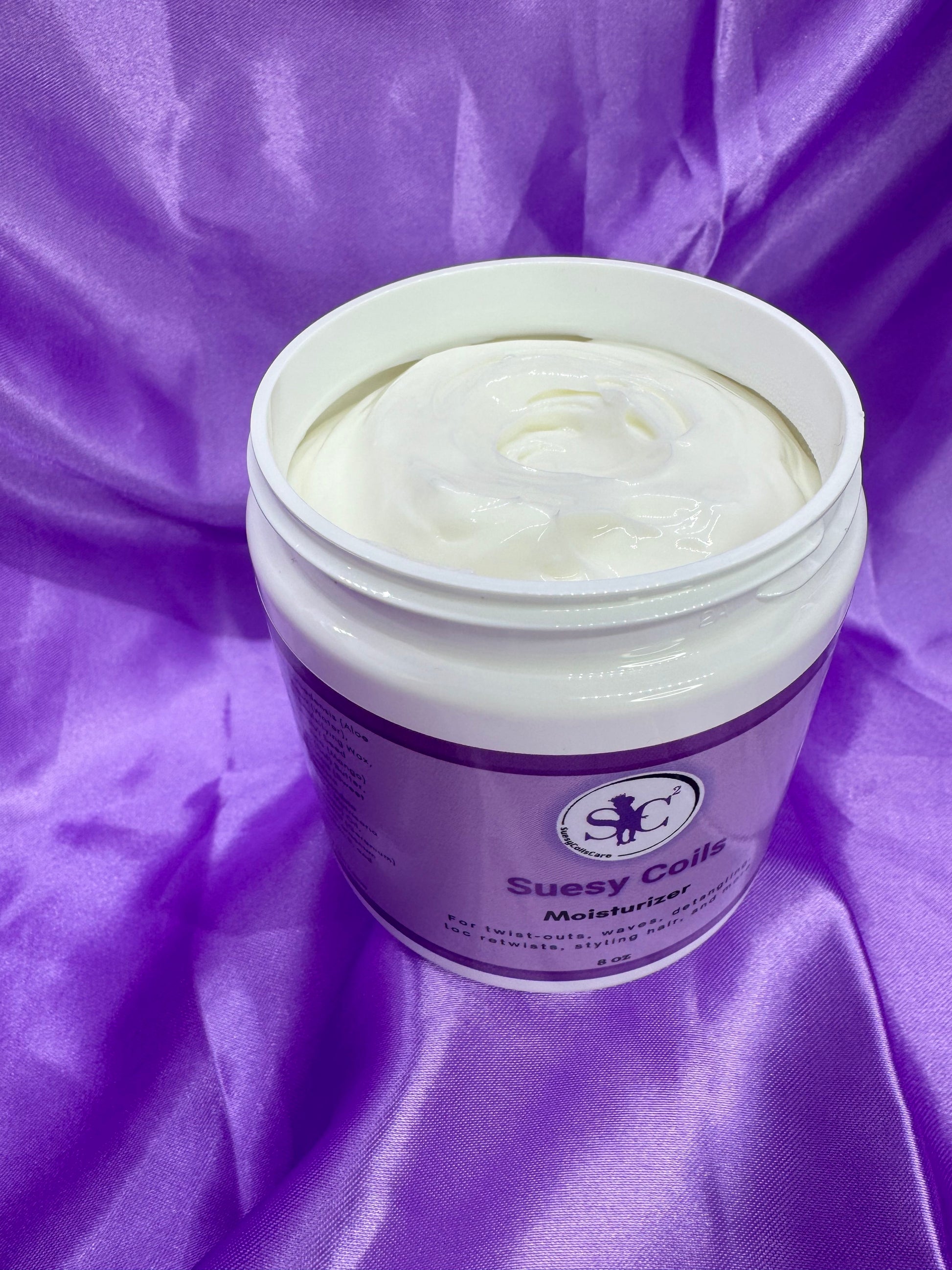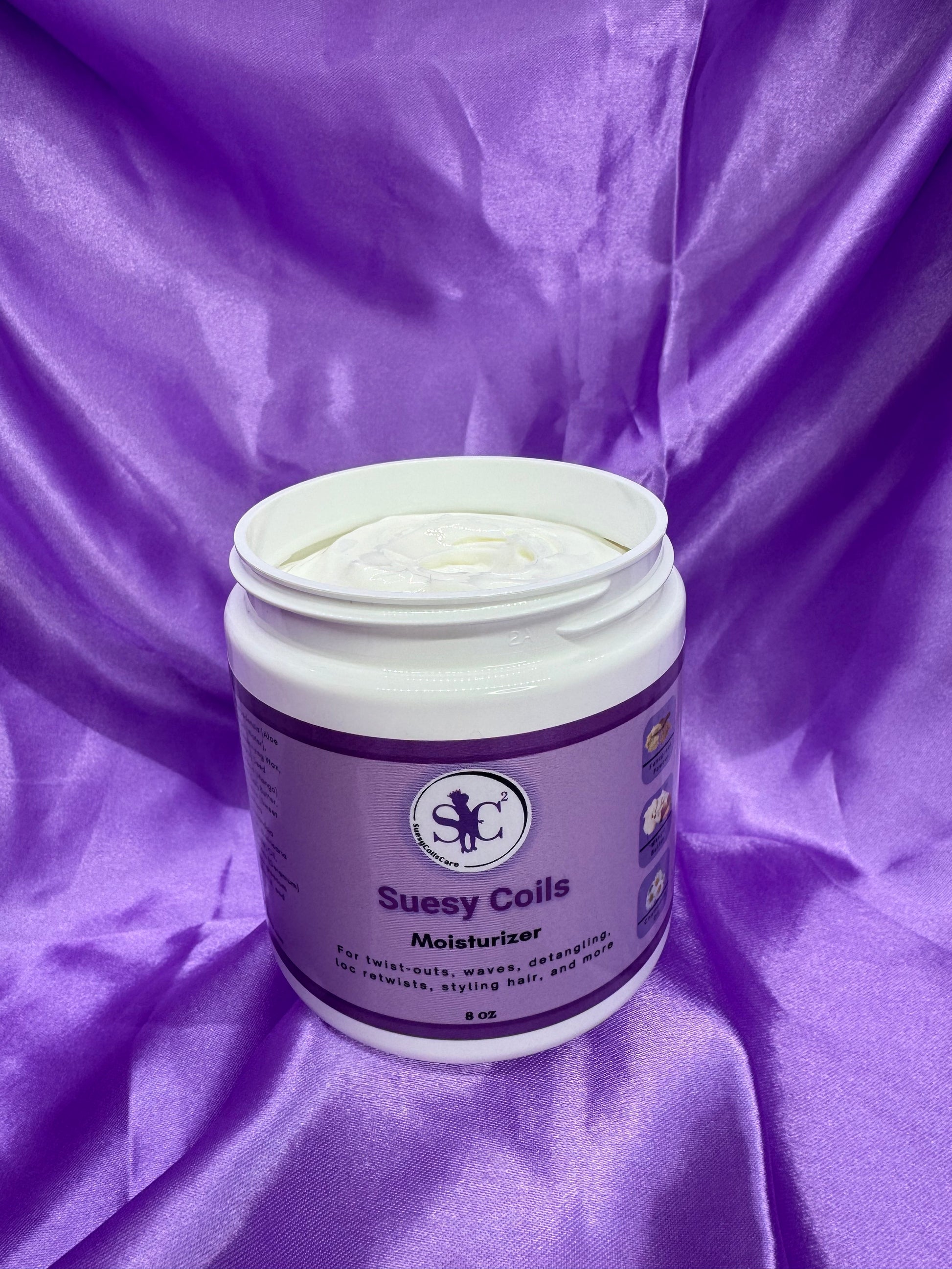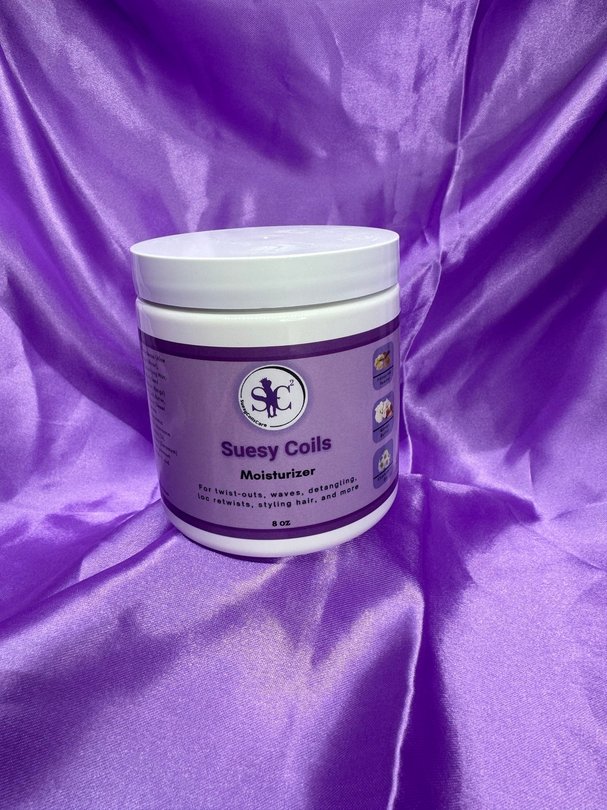 Suesy Coils Moisturizer provides conditioning benefits that will leave your coils thirsty for more. By locking in moisture, maintaining hair elasticity, preventing breakage, increasing hydration and shine, and softening hair strands. This lightweight cream is formulated with natural oils and butters that are safe to apply to the skin as well. Keeps your hair and skin moisturized.